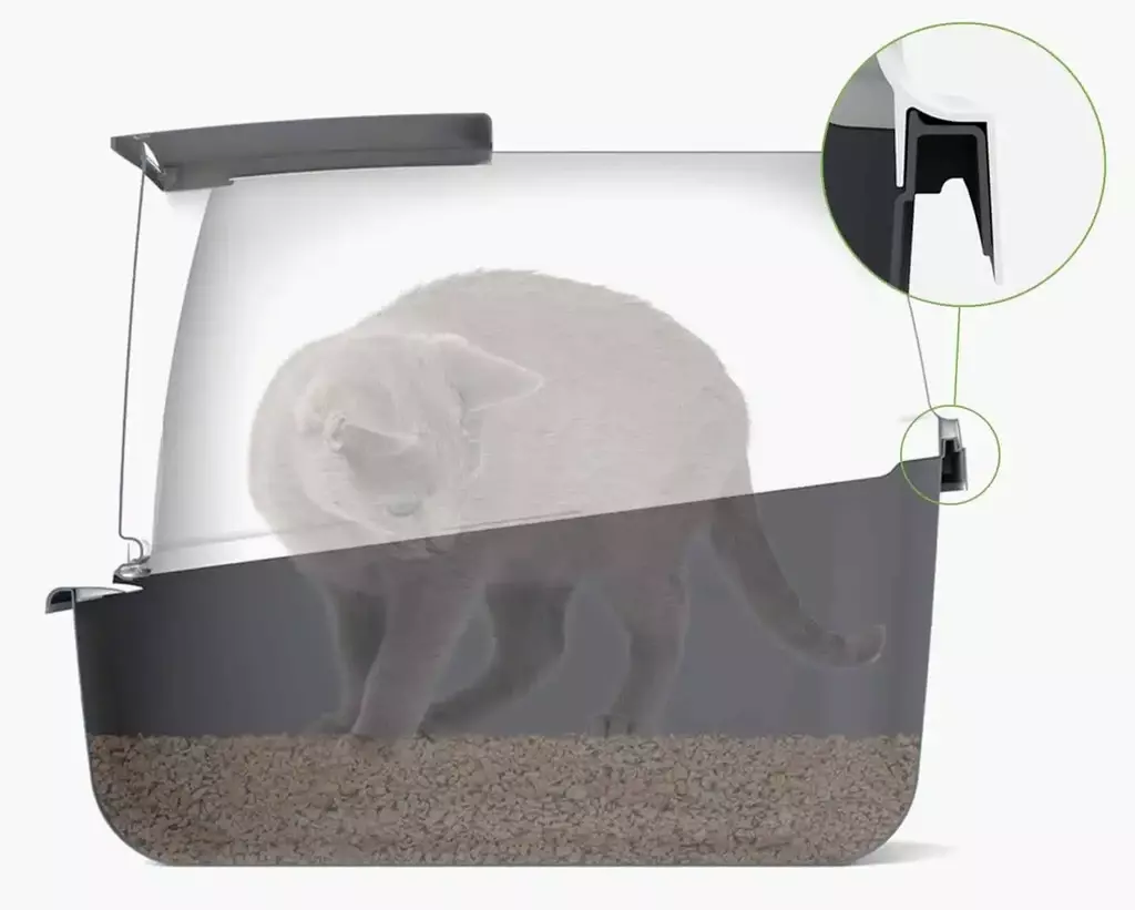 Como los gatos suelen mirar hacia la entrada de la caja higiénica mientras hacen sus necesidades, los Areneros Catit están diseñados específicamente con una parte posterior elevada para ayudar a evitar fugas de orina.