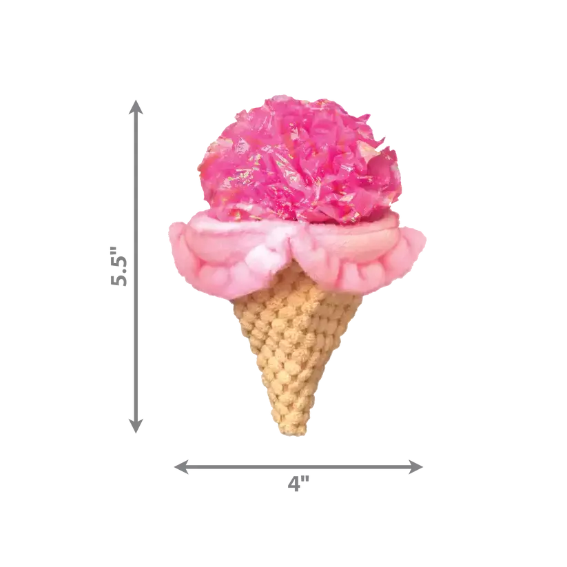 Kong Crackles Scoopz Helado, ofrece una doble dosis de diversión con crujidos para dar rienda suelta a los instintos de caza y una tapa de helado con elástico que tienta a tirar. El cono de felpa es ideal para agarrar y el diseño separable fomenta la lucha libre completa. El Kong Catnip agrega el sabor favorito de los gatos para una diversión duradera.