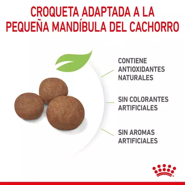 Este alimento a medida contiene nutrientes como vitaminas C y E, que han demostrado contribuir al desarrollo saludable del sistema inmunitario de los cachorros.