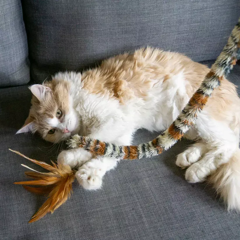 - Movimientos y plumas despiertan el instinto de caza y fomentan el juego saludable y activo.